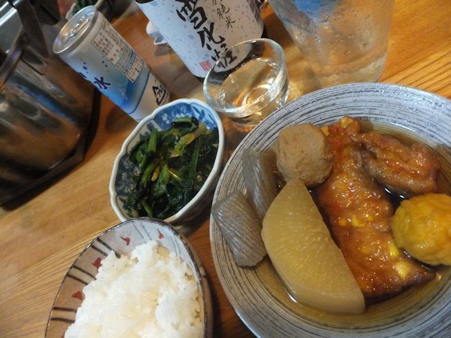 ほうれん草ののり和えと。デザートは、大好きな抹茶ドゥーブルフロマージュ。 今回は2箱も注文しました。 おでんの残りをそのままおつゆに、長ねぎもたっぷり入れて、お昼のうどん。ほうれん草もゆでて乗せました。