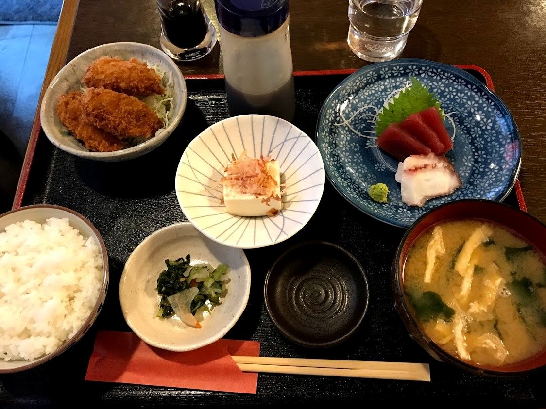 自転車で通りかかったら、日替わりがカキフライだったので。