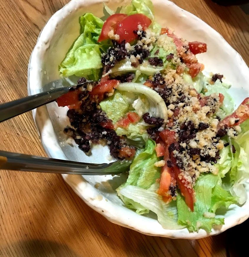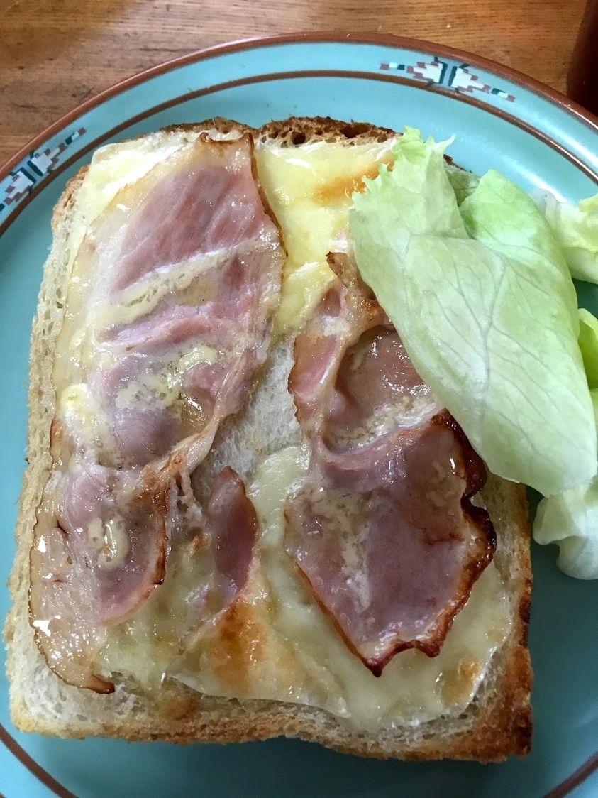 レタスとトマトには、オリーブオイルをかけて、炊いた雑穀に白バルサミコをかけて、ひねり揚げガーリック&ソルトもかけました。雑国とひねり揚げで、米米サラダともいえるし、オリーブオイルと白バルサミコでヴィボンサラダともいえます。ブロッコリーに混ぜたオリーブペーストもヴィボンのです。デポーに置かなくなったので、時々注文します。 朝兼昼の、ハムチーズトースト、レタスもたくさんのせました。