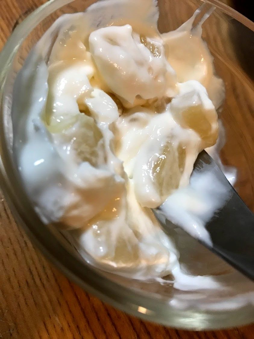 生乳100%ヨーグルトが余ってきたので、水きりヨーグルトにしてビートグラニュー糖と白桃缶を混ぜました。クリームチーズ風になります。 ヨーグルト2パックに白桃缶1缶で、フルーツゴロゴロ。 去年のビーフシチュー缶をあけました。温めるだけで野菜もたくさん入ってます。レタスとトマトのサラダ、ブロッコリーとゆで卵、オリーブペーストとマヨ和え、ハッシュドポテト青のり。