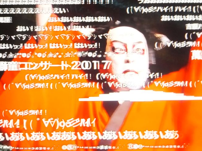なすのフライには、タイヘイのソースかコーミのトマトベースか~?わたしは、ソースとトマトベースを混ぜたのが好みでした♪やっぱりなすにはポン酢、という家族もいました~金曜日の日本の伝統は、にこにこ歌舞伎でした。おもしろかったというか、おかしかったー 自撮り棒とか、電話屋とか、はしご屋とか、好きなこと言ってる。 初音ミクちゃんも出演。にこにこ視聴者によびかけたらこんなになった。 最後はロックで獅童さんのコンサート。今日は夕方、空が真っ暗になりました。が、雨は降らず。冷たい風が吹いています。