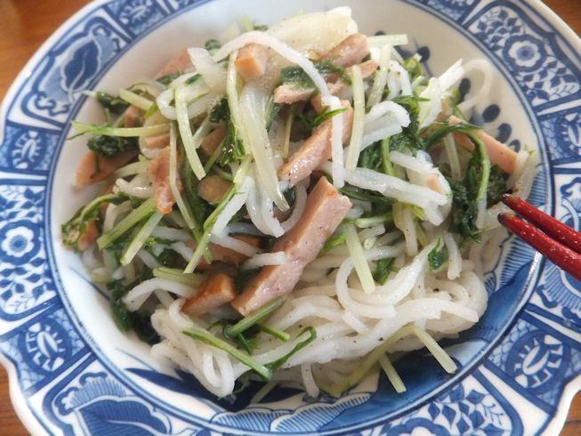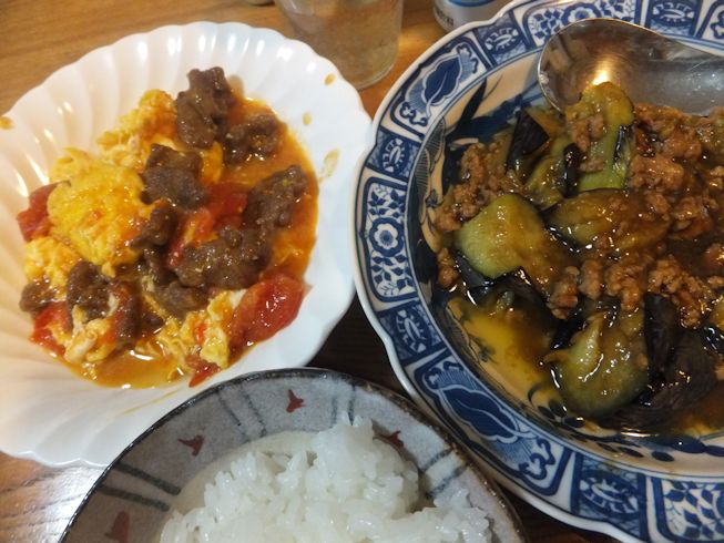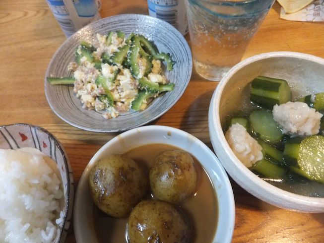 なすが届くようになりました。素揚げして、トマトと豆腐でポン酢サラダ。鍋の季節じゃないので、豚肉と長ねぎでスープ。 それから麻婆なす。卵とトマト炒めに、牛肉を入れたらますますおいしい。味付けは調理用合わせ酢でさっぱりと。 お昼に、鳥天と白だしで簡単親子丼。 大根と鶏肉を煮たら、大根1本食べてしまいました。豆腐炒めにピーマンを入れてもおいしい。 キャベツと豚肉があると、何度も作る、味噌煮。簡単だし、毎日食べたいくらいだけど、キャベツ1個食べちゃうので。きゅうりが届くと作りたいのは、ポテトサラダ。じゃがいも1キロ1度に食べてしまいました… 米めんを使って、 わしたポーク缶と、水菜を入れて、ビーフン炒め風。これもお昼でした。 チョコの季節が終わったけど、チョコは食べたい。ので、ブラックチョコ1枚と、コーンフレーク1箱で、チョコフレーク。 こういうのは作っておくと、どんどんなくなります。 ゴーヤーチャンプルーの季節ですが、ゴーヤーがきゅうりより小さい。肉だらけにならないように、豚挽き肉1パックで作りました。反対にきゅうりは、巨大なのが届くので、煮ました。小玉じゃがいもは、圧力鍋でしょうゆと素精糖で煮てから、ねりごまを入れて、煮からめると、こっくりしたおかずになります。