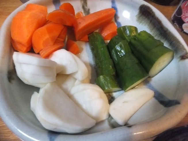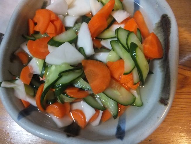 すごいですよね、なにもしなくても密封。 魔法のようです。 漬け物ならなんでも食べる我が家なので、 どれもおいしくいただいています~ |