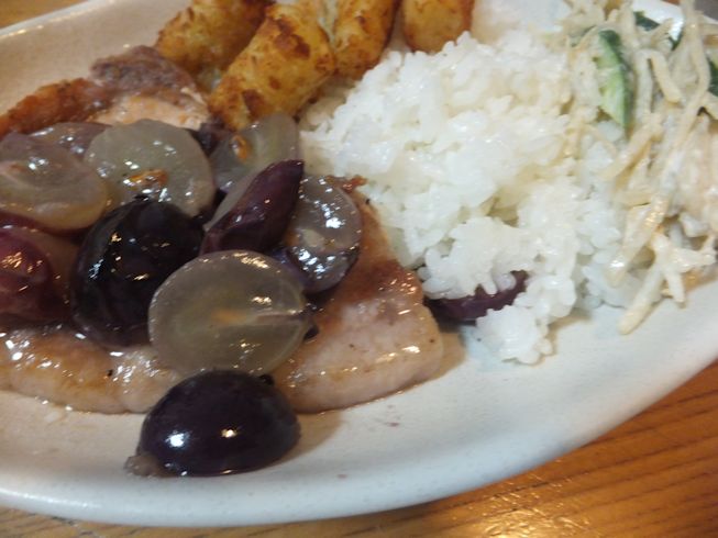 バジルさんから教わったの。 同じようなレシピが、リンゴといためたり、リンゴソースをかけるとかあるでしょ。 甘酸っぱいのがお肉に合うんだけど、 ぶどうだと特別なごちそうになります。 おつまみなら、角切りベーコンと少量でもいいみたいです。 |