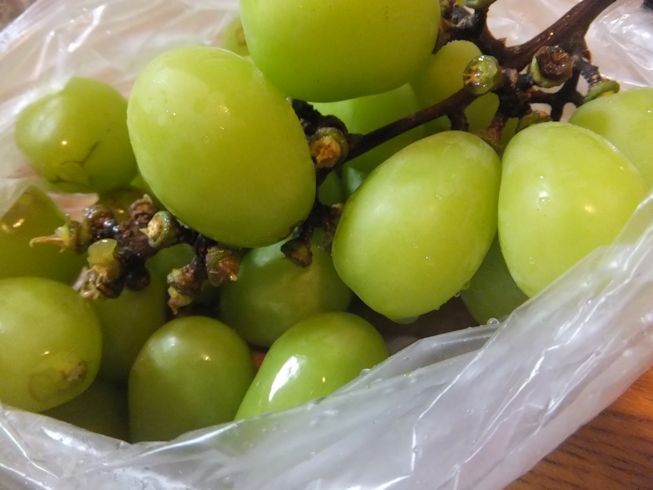 どんな味か想像できないけど美味しそう~♪ 塩尻はブドウの町なので、なんだかんだと高級ブドウを頂きます。 山形のさくらんぼと同じ感覚かなぁ。 傷む前に今からシャインマスカット食べる~♪