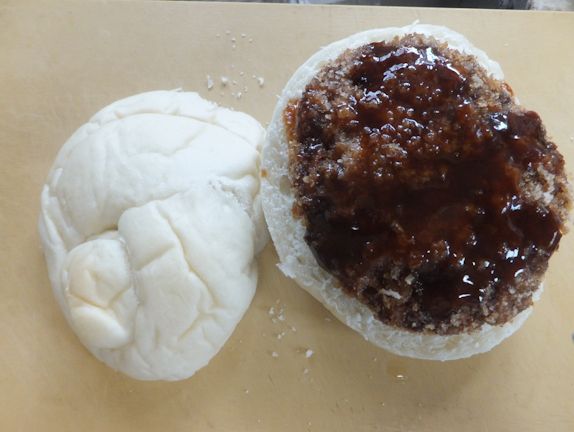 ザクセンのホワイトロールと、デポーのメンチカツは大きさがぴったり。