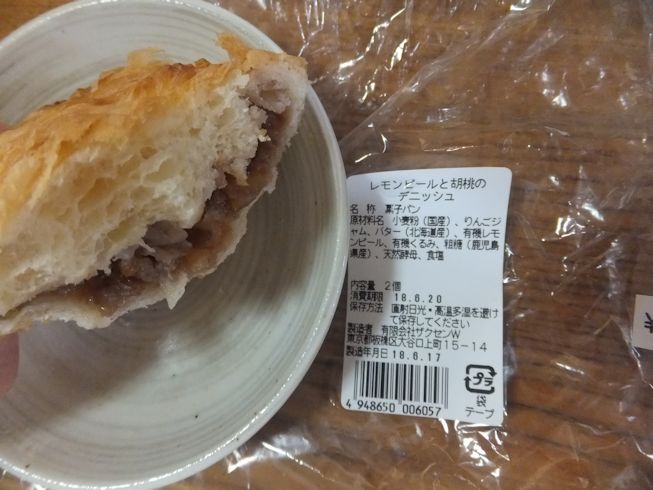 同じくデポーで買ってきた、レモンピールと胡桃のデニッシュ、