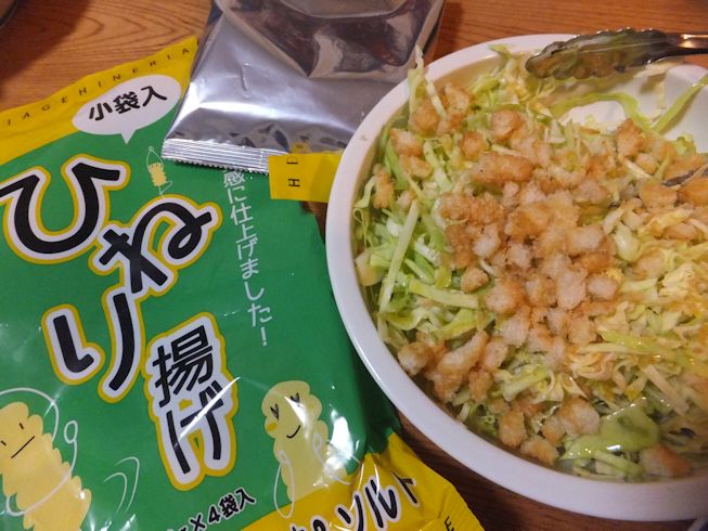 サラダにひねり揚げ