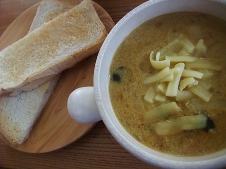 カレーのなべをきれいにするには牛乳を入れてスープ。