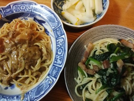 ほうれんそうとベーコンを炒めたのも冬が一番おいしいです。