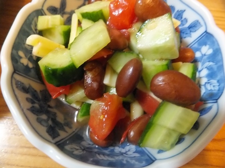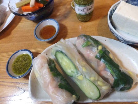 チキンサラダスパゲティ胸肉はたいてい鶏ハムのようにゆでて、チキンサラダにします。スープもできて、一石二鳥です。きゅうりと糸寒天のスープ。 ・・・・・冷凍の白玉ぜんざいがおいしいと聞いて注文したらほんとにおいしい。 あますぎないあんこがおいしいです。それもそのはず、丸きんまんじゅうさん。 小袋が3パック入っています。デザートにちょうどいい量です。これからの季節には、パックをあけて、かき氷にのせてもいいでしょう~ ・・・・ラザニア ホーローのバットより深い入れ物がないかとさがして、 確か、このガラスは耐熱だったはず~ 安くなっていて、ふたもあったので、 糠味噌入れるのにもいいかなーと買ったのですが、 プラスチックのふたは切れてしまい、もうありません。 ガラスでよく見えないので、子どもにアルファベットを読んでもらいました。 arcuisine フランスの耐熱ガラス容器がたくさんでてきました。 今は外側がまっすぐで、こんなに波型になっていないようです。 かなり深くて大きいので、 パスタシート8枚、 牛乳1本分(900ml)のホワイトソース、 ひき肉250gのミートソース、 トマト3個、なす3本、ぶなしめじ半パックが入りました。 今度から、グラタンはこれで作ろう~ 前回、パスタを水にくぐらせるのを忘れた気がします。 今回は、トマトも入れたし、かたくなりませんでした。 サラダは簡単にきゅうりと大豆ドライパックのマヨネーズあえ。・・・・・いつ食べてもおいしい炒麺と、このところ毎日のように作っている、トマトと卵の甘酢炒め 、きゅうり入り。きゅうりは薄切りの方が味がなじむかも? ・・・・・ドライマンゴーのヨーグルト漬け驚きのおいしさです。 水分を吸ったマンゴーは、ドライフルーツだったとは思えないくらい みずみずしく戻っていて、 ヨーグルトは、水分が減って、水切りヨーグルトのような、 クリームチーズのような感じになっていました。プレスオールタナティブのフェアトレードのドライマンゴーと新生酪農のプレーンヨーグルト、どちらもそのままでもおいしいので、ますますおいしくなりました。・・・・・鶏肉とズッキーニのバジルクリームソース。一見グリーンカレーに見えるけど違います。 夏は金時豆ドライパックとトマトのサラダ、今回はミックスチーズ入り。 バジルクリームソースは、鶏肉を焼いた後に、生クリームと冷凍のバジルソースを入れるだけ。簡単でおいしくてごはんが進みます。 ・・・・・パクチーペーストをいただいたので、何年かぶりの生春巻き。平牧の豚こま、エコシュリンプ、モヤシ、きゅうり、ニラを巻きました。スイートチリソースは、米酢、素精糖、豆板醤、にんにくを混ぜただけ。パクチーのペーストがおいしすぎる。 もうこれなしでは生春巻きが食べられないかもー 泊りでいなかった子どもにも翌日だしたら、ヤバいと言っていました。 家でも作れるかなあ。 昔のマヨびんくらいの大瓶(500g入り!)で食べたいです。 ひややっこと、調理用合わせ酢で作ったピクルスきゅうり、にんじん、かぶ、セロリ入り。