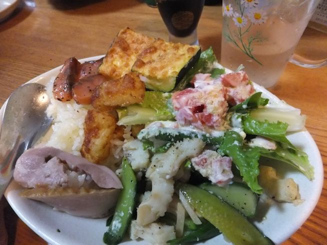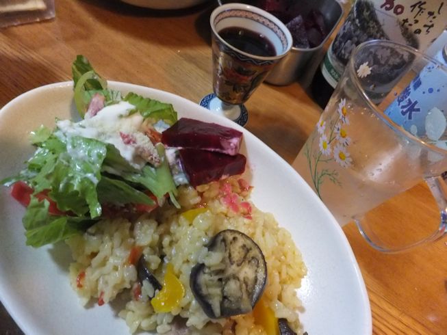 鶏肉、玉ねぎ、ナス、パプリカ入り。