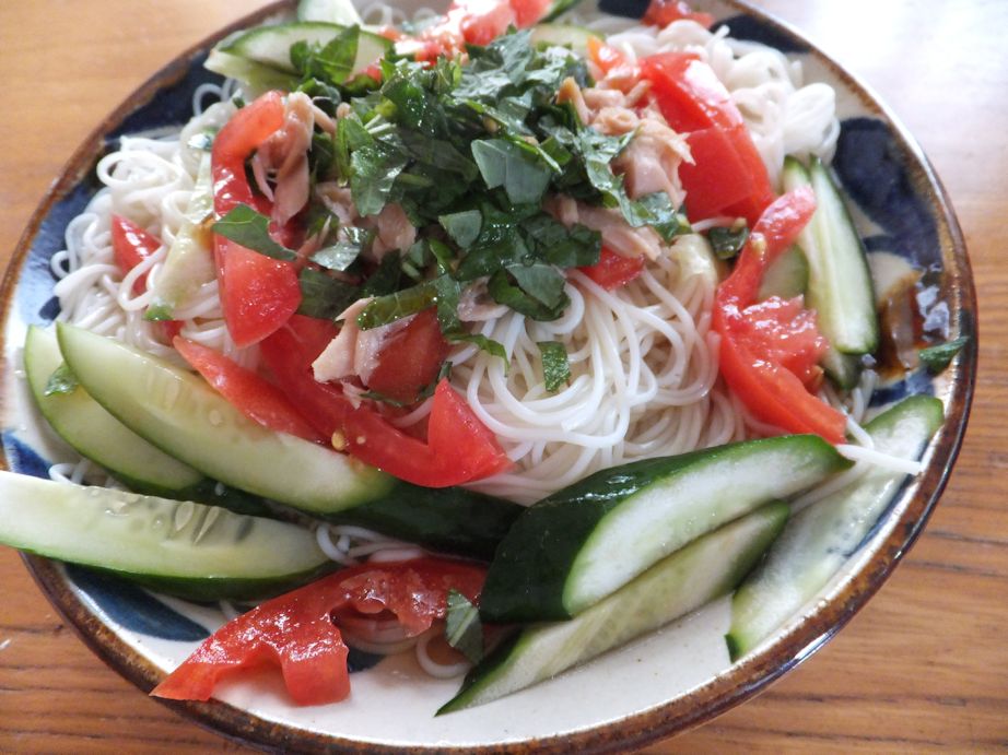 トマトときゅうりとしそで、見た目はいっしょだけど、