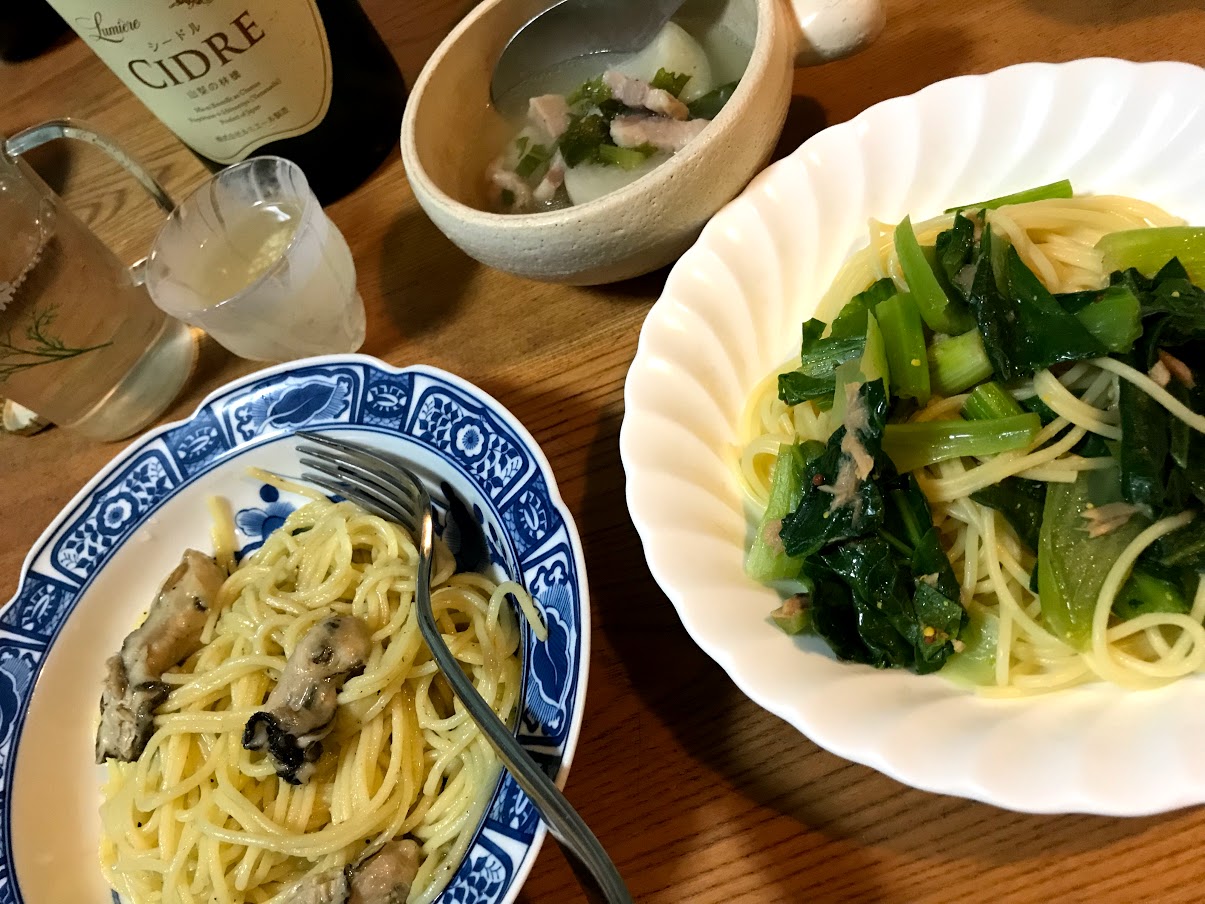 いつもは和え物で出す、小松菜とまぐろ缶のマスタード和えは