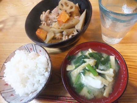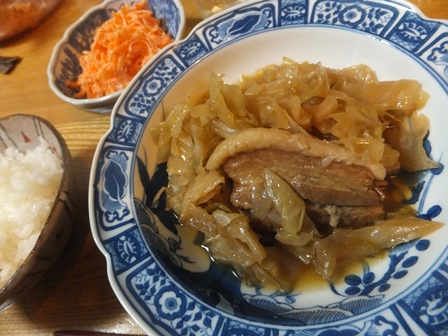 万能だしで、豚バラスライスとえのきだけを煮ました。