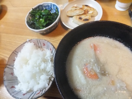 玄米餅を油で焼いてのせたので、力うどんでもあります。