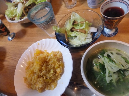 レタスのサラダに、ブナシメジを炒めてドレッシングに。