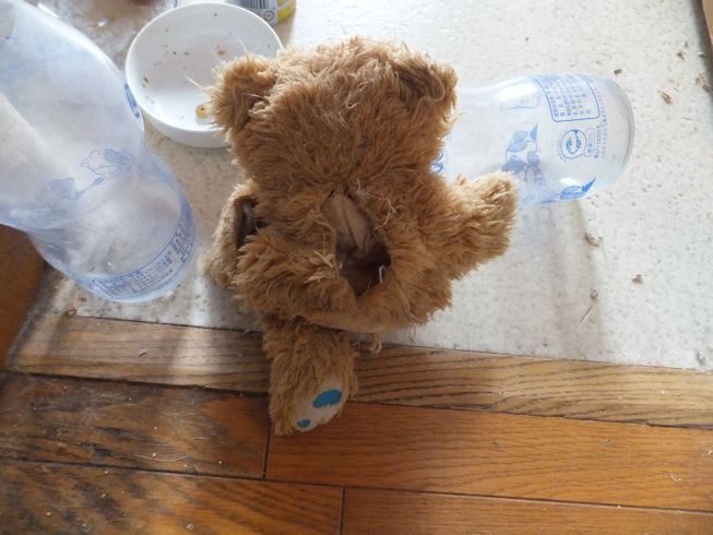 ユニセフのくまのぬいぐるみは、家じゅう歩き回ってます。