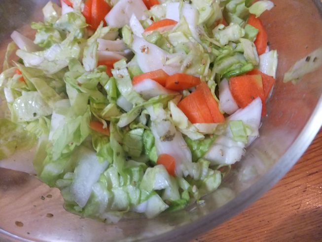キャベツ、人参、かぶに柚子風味浅漬けの素を混ぜるだけ。