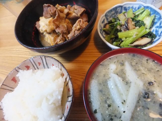 小松菜としいたけの塩麹炒め、