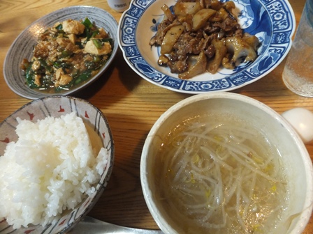 ニラ入り麻婆豆腐と、
