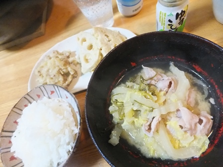豚肉と白菜だけの味噌鍋。