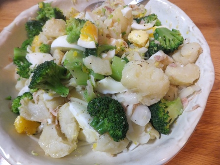 スペイン風にまぐろ缶やゆで卵もいっしょのサラダ。