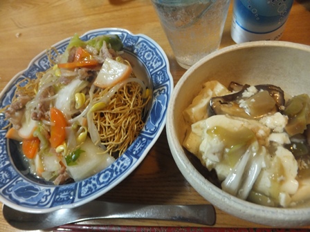 豆腐と干ししいたけ、ベーコン、ザーサイ、長ネギ、生姜を重ねて蒸します。