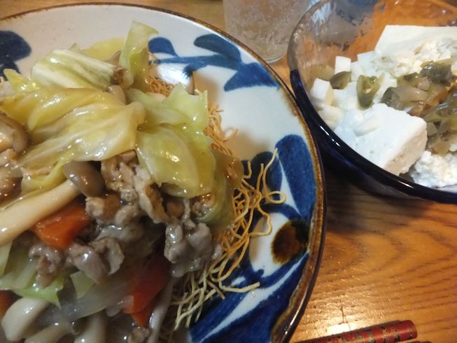 冷奴に味付けザーサイ乗せ。