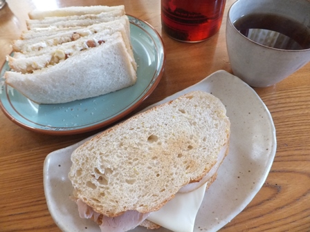 味輝の雑穀パンに、モモハムスライスとチーズ。