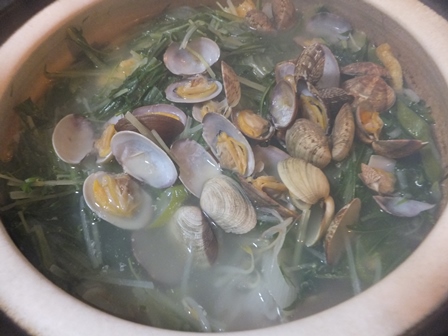 あさりの口が開くまで火にかけるだけなので、あっさりしています。