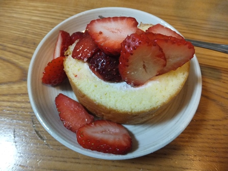 いちごが届いたので、ケーキを焼こうかと思ったら、