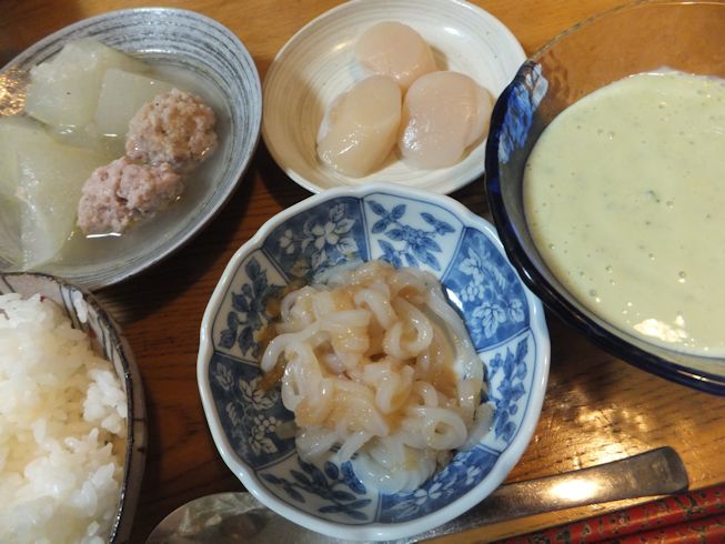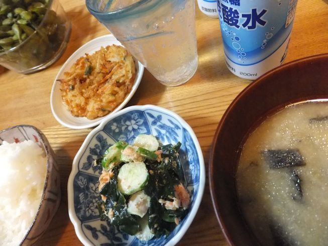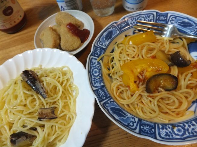 9月の分がとんでました。8月31日きゅうりがあるうちに何度でも食べたいきゅうりと鮭のごまマヨネーズ和え。 前は、一切れあまった鮭と、ごまをすって作っていたけど、消費材を使うとまぜるだけ。重茂のわかめも混ぜて。 長芋の味噌汁、ごま油とのりを加えます。長芋の食べ方で私は一番好きかも。 枝豆の残りと、冷凍のかき揚げ。 9月2日ヨーグルトいちご味、おいしい♪ さんまフィレに、オリーブペーストを塗って、丸めて焼いたもの。家族に大好評でこれだけ写真を撮りました。 9月4日日曜日、デポーで沖縄そばがお買い得になっていました。紅しょうがと、煮豚もお惣菜で買ってきました。味卵は万能つゆで作っておいたもの。細ねぎを買ってくるのを忘れましたー ・ひややっこ。きゅうり、トマト、わかめのマヨネーズ和え。 9月9日四角い容器なので、まるで豆腐だーと、子どもが笑う、濃厚豆乳プリン。通常取り組みがないころ、デポーで買っていましたが、そのあと消費材になって、いつでも注文できるようになりました。豆乳???と思って食べたことがないプリン好きな人は、ぜったいに食べたほうがいいおいしさです。きらず揚げの生産者、おとうふ工房いしかわと聞けば、おいしさも納得でしょう。 配達日前で材料がない、やる気もない夜ごはん、パスタ2種類。いわしのオリーブ油漬け缶とにんにく炒め、なすとパプリカのトマトベースソース。チキンナゲットは温めただけ。やる気がなくても、材料がいいのでちゃんとおいしくできます。 9月10日味輝のロールパン、一つだけ、やけに大きくない? 量ってみました。 やっぱり15gも重い! チキンナゲットと、クリームチーズ+チョコスプレッド きゅうりがある頃は、毎日食べました。 いかときゅうりのにんにく炒め なすとひき肉の味噌炒め そうめんかぼちゃ つるむらさきかな? 9月11日島原手延べうどん。石臼引きのベージュ色のうどん。 冷やしうどんに冷凍のかき揚げで夜ごはん。 9月12日水出しほうじ茶を作っていましたが、茶こしが目詰まりしてきたので酸素系漂白剤で漂白しました。茶色いです 酸素系漂白剤とお湯を入れると、ぶくぶくぶく~ 泡が落ち着いてきたら、きれいになっています。 真っ白になりました。 9月13日豚ひき肉と夏野菜でドライカレー。 9月14日冷凍のイカのわたがあんまりきれいだったので、塩辛を作りました。3か目くらいからが食べ頃でした。 すっごく大きな落花生。生の落花生をゆでたのは、夏の終わりのお楽しみ。この後の配達は、台風などで欠品になりました。 9月16日この夏、あまり食べなかった、きゅうりの冷たいポタージュスープ。火を使わずにバーミックスで混ぜるだけなので、食べる直前に作ります。久しぶりに作ったら、息子がやっぱりこれおいしい!だって。簡単すぎる作り方をこれいい?クラブに載せました。これいいクラブ イカの刺身に辛子明太子 冬瓜と鶏肉団子の煮物ほたて刺身イカ辛子明太子きゅうりの冷たいスープ9月17日いつもは、万能つゆで煮るか、塩炒めでごまを振る、甘長とうがらし。rubeさんのやみつきピーマンを読んで、甘長とうがらしで作ってみました。まぐろ油漬け缶と、万能つゆを入れて、ふたをして蒸し煮。うまい! からい! と言いながらやめられない、おとなの味~♪