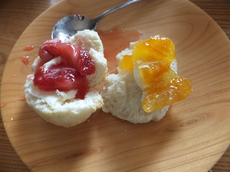 いちごジャムとマーマレード、クロテッドクリームと一緒に