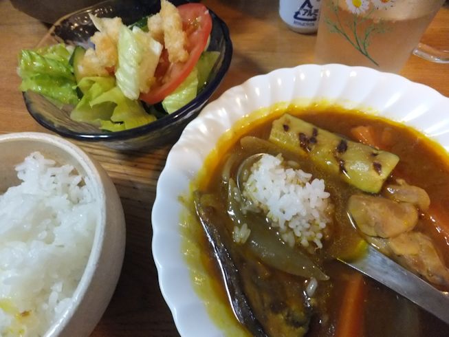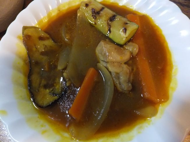 サワースープー玉ねぎ、ナス、パプリカ、ズッキーニ、ポークウインナ。
