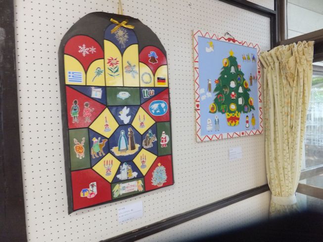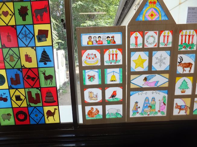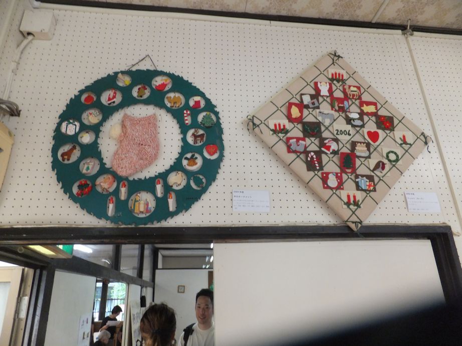 先生方手作りのアドベントカレンダーが何年分も飾られていました。