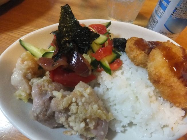 カツオのたたきのサラダ。冷凍コロッケ。5/2