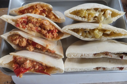 トマト卵炒め、キャベツチーズ炒め、チョコスプレッド
