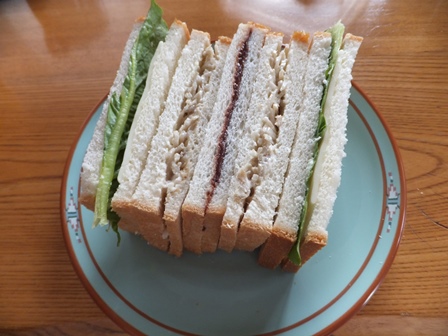 月曜日、デポーで買ってきた、メンチカツで、メンチカツサンド、 じゃがいもと人参のマスタードマヨネーズあえ。 7月2日 火曜日 オーブンで焼いたホットケーキ キャベツ、マイルドあらびき、コーン、マスタードマヨネーズ。 7月3日 水曜日 サンドイッチ、二人分。 チーズとロメインレタス、ゴボウサラダ、チョコスプレッド。 木曜日は、ゴボウサラダをマグロ油漬け缶にして同じようなサンドイッチ。 PR |
