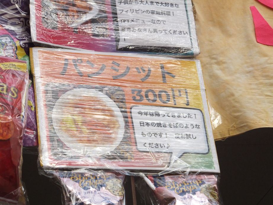 まず向かったのは、ポルトガル。 なくなる前にエッグタルト。 リングイッサとパステウ(揚げ餃子、人参もみじん切りで入ってました。) 近隣が煙もうもうになるリングイッサ。 スペイン、並んでます。 上から、まんまるのコロッケ・パパ レジェーナ、 馬蹄形のチュロス、シナモンとシュガー、 揚げ餃子エンパナーダ、ポルトガルよりスパイシーでした、 コロナビール、スパニッシュオムレツ、サングリア。 にんにく香るパン入りスープ、ソパ デ アホ は品切れ。 コロッケはトマト味のひき肉が真ん中に入っています。 カンボジア 後ろにはこれから調理する刻んだ野菜の袋詰め。 カンボジアのアンコールビール、 ソムローカリー(甘くてピリピリ辛いさつまいも入りのココナツカレー、フランスパン付き) モアンチャー クニャイ(もやしと同じ太さの根ショウガがたくさん入った炒めもの) インド おにぎりくらい大きいサモサ、 ラッドゥー (チャナ豆の粉を油でかためたもの、ショートブレッドみたいにほろほろ、アーモンドとピスタチオ入り) ラムチャイ、チャナカレー。 チキンカレーとタンドリーチキンは品切れ。 サモサは食べ応え十分。 ポーランド 料理をもらう番号札も、お店によっていろいろ。 鍵をつけるプラスチック製とか、厚紙に紙を張ったもの、 どこもぬれたりしても大丈夫なように、 ラップをまいたり、ビニールテープが張ってあります。 ポーランドはこんなかわいい手作り。 これは前食べて、かなり大きかったので、今回はパス。 ナレンニキ、ベリージャム入り(クレープ) プラツキ(じゃがいもの薄焼き) ジュレック(ライ麦入りのスープ) お腹もいっぱいになったので、 ごみを捨てて、お笑いサークル・クスブルを見に行きました。 真ん中が吹き抜けで、教室がどちらにあるかわかりませんが、 階段を見ながら行くと、たどり着けます。 毎年展示をしている、学生NGO ALPHA。 フィリピンの子どもたちの支援をしています。 子ども達でにぎわっていた、ボードゲーム研究会。 階段のチラシを眺めながら、 外語祭が自森の学園祭に似ているのか、 自森が大学っぽいのか~? SEKAI NO MIYAGE 外語生と卒業生からの、世界のみやげの寄付品を売っていました。 受付や販売担当の学生たち。 にぎわっています。 食べる続き、チェコ 肉と野菜の煮込み、グラーシュ、玉ねぎのすりおろしたっぷり、 ドイツと違って、かたまり肉が入っています。 細長いうどんのようなものが入っていたのは、ゆでパンでした。 フランボラーク(じゃがいもと玉ねぎ入り薄焼き) ペルシア 番号札には偉人が。 ポレシュト、薄焼きナン付。鶏肉となすの入ったトマトスープ、 ソーハーン(ナッツの入ったヌガー) カップもかわいい。 ソーハーンに入っていた台紙にも一口メモが。 ラオス ナムワーン(コーンとタピオカ入りココナツ汁粉) ビーンカイ(手羽先の焼いたの) ライス付きラープ(パクチーたっぷりの鶏ひき肉炒め) もう入らないと言っていたけれど、 マッサマンカレーを食べていないことに気付き、 タイへ アラビアのバスブーサ(セモリナ粉を使ったシロップかけケーキ) タイのマッサマンカレー、甘くて少し酸味があります。 最後にビールを買った人。 ごめんねモンゴル~ ウルドゥー(パキスタン・北インド)で、サモサなら入る。 食べた中で、一番カレー味のサモサでした。 同じようなメニューでも食べ比べてみると、みんな味が違います。 ごめんね、中央アジア、マレーシア。 アルパス20円、(アルコールパスポート) わたしが飲んだのは、サングリアとラムチャイでした。 咳の季節じゃなければ、もう少し飲むんだけどなあ。 また来年。 外語祭のホームページがあります。 → 外語祭 料理店 |