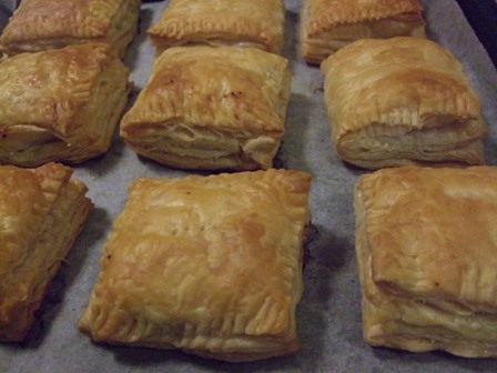 ミニハンバーグを入れて焼くと、簡単ミートパイ
