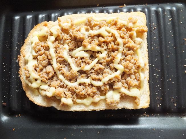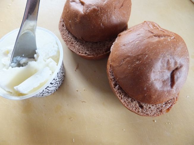 玉ねぎ、ベーコン、キャベツとカレー味のホワイトソース。 ハンバーガー。 豚ひき肉を1パックを3つに分けて、 何もいれずに丸めて伸ばして焼いただけのハンバーグ。 焼いた後で玉ねぎ輪切りも焼いて、ケチャップソースも温めて、 ディルピクルスとマヨネーズ、スライスチーズ。 |