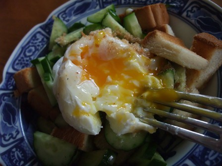 おとし卵を乗せたパンサラダ