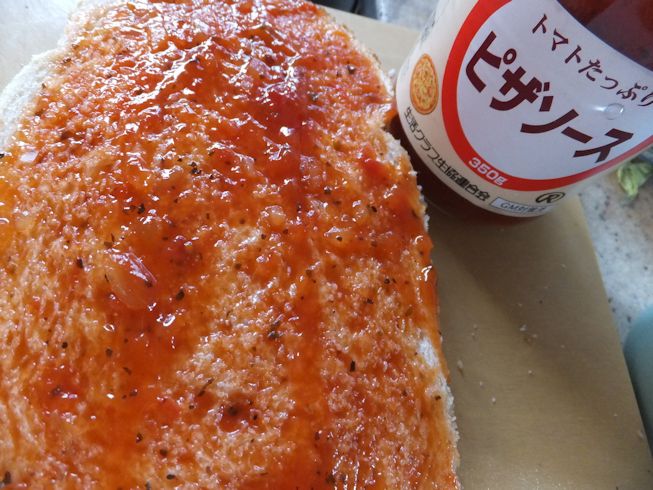 前のタイプも残っていたので食べ比べ。薄いピザ生地に薄く塗るのにいいです。新よりバジルが効いています。 あと豆板醤の辛味がありました。 甘いパンもというので、練乳きなこトースト。