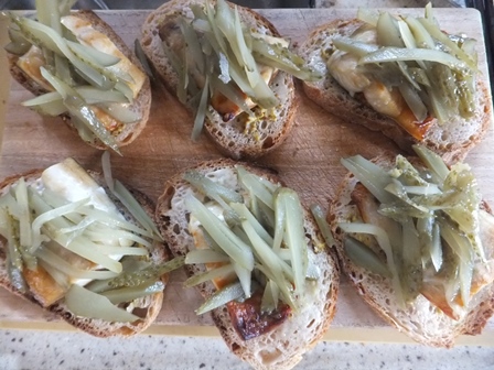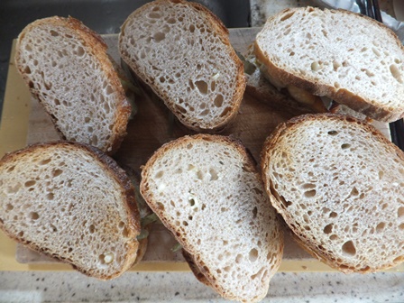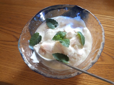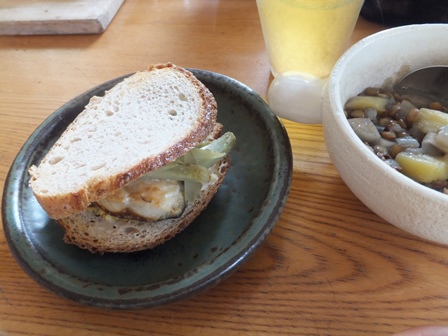 ヨルタモリでサバサンドを見てから、食べたーいと思っていたので、今日のお昼はサバサンド。さばが届くと、みんなごはんのおかずになってしまうので、生活クラブの骨とり塩サバ切り身を使いました。解凍してグリルで焼くだけ。 今週、生活クラブは休み週だったので、パンは木のひげのブールを買いました。レーズンと全粒粉の酵母です。さばを焼く前に、グリルでトーストして、ファットスプレッドと、粒入りマスタードを塗ります。焼いた塩さばをのせて ベトナムサンドは、人参や大根の甘酢漬けをはさむようですが、人参も大根もないので、刻んだ、ジェニュイン ディルピクルスをたっぷり乗せて、 もう一枚パンを乗せれば出来上がり。 昨日のレンズ豆のスープと、水出しほうじ茶。作ってみると思い出しました。ずいぶん前に、板橋のやっくんちの近くのお店でベトナムサンドをいただいたし、バジルさんちに、ずんちゃんがさんまのマリネサンドを持ってきてくれたことがあったし、自分でもオイルサーディンを作って、パンに乗せて食べています。手軽なまぐろ缶ばかりじゃなく、たまには、お魚を焼いたり煮たりして、パンにはさむのも楽しいです。デザートは、桃のヨーグルトクリーム。グラニュー糖を入れて生クリームを泡立て、ブレーンヨーグルトを入れて混ぜ、刻んだ桃をあえました。ベランダのミントの葉をたくさん乗せました。 猛暑はおさまったけど、やはり昼間は暑いです。