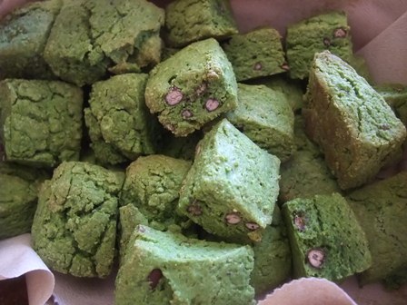 生活クラブの抹茶「早春の香」と、赤飯用小豆水煮を入れました。
