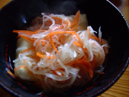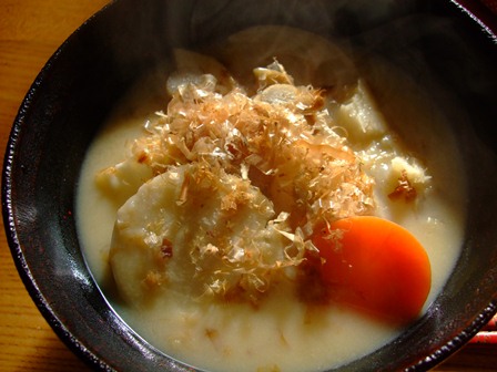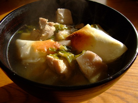 だいたい作るのは、小松菜と八つ頭の入ったしょうゆ味の。