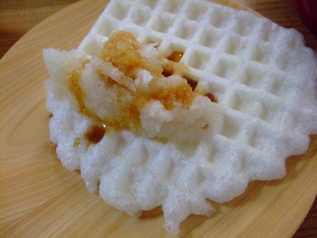 庄内の角餅をはさんで焼くだけですが、 厚みがあるので薄く切るか、 電子レンジで20秒くらい温めて、やわらかくしたのをはさむと すぐに焼けます。 今日は、大根おろしと バターとメープルシロップで。 大根おろしもとても甘かったです。 お餅にメープルシロップ?と思いますが、 モッフルにすると、まわりがかりっとして、お餅の食感とかわります。 |