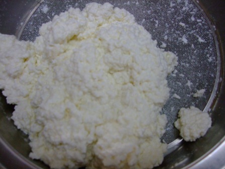 ざるに残った方が、カテージチーズ。