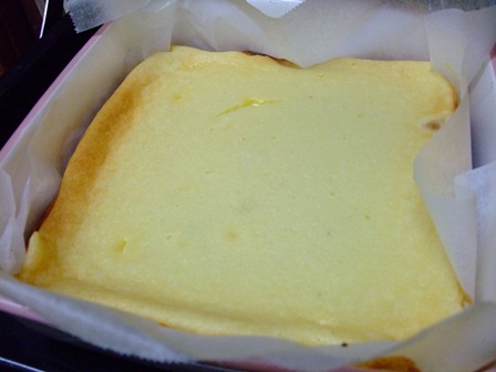 もちもちの、ケーキと、チーズケーキの中間のようなものが出来上がりました。